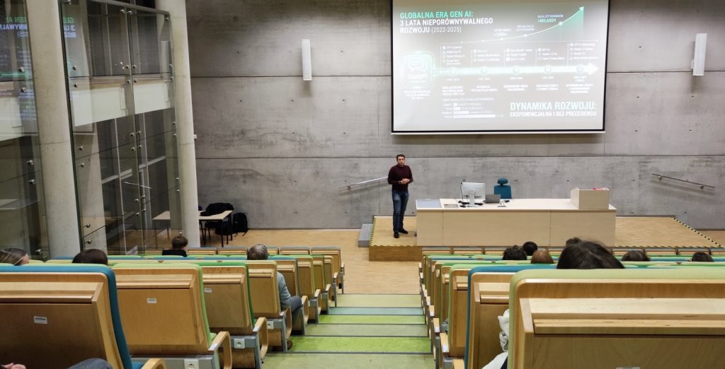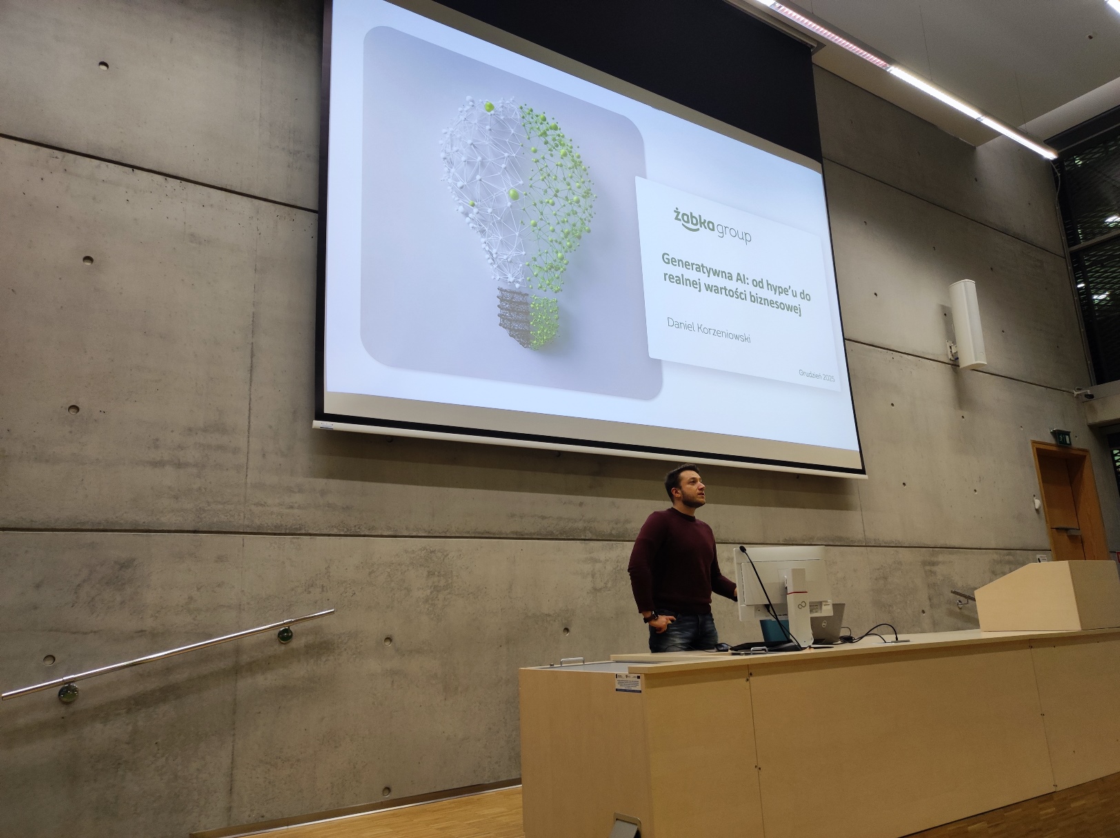 At the Poznań University of Economics and Business, an open lecture titled “Generative AI: From Hype to Real Business Value” was held, delivered by Daniel Korzeniowski, Head of Gen AI & Automation at the Żabka Group. During the lecture, practical examples of using large language models were presented—from early prototypes to scalable implementations that can deliver measurable business benefits.